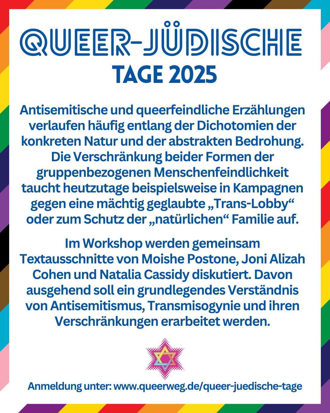 - Kontakt https://www.queerweg.de/queer-juedische-tage