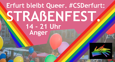 Unter dem Motto der voranggegangen Aktionswoche "Erfurt bleibt Queer!" wird es ein vielfältiges Bühnenprogramm geben. Dabei bereichern neben den tollen Künstler*innen auch zahlreiche Stände vieler Organisationen unser Straßenfest.